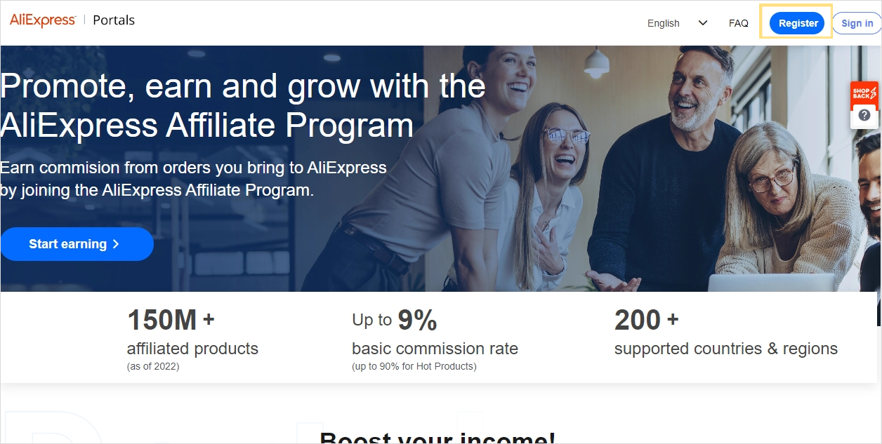 2. 알리익스프레스 어필리에이트 포탈 회원가입